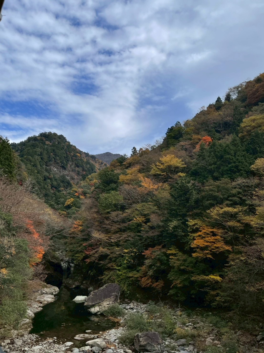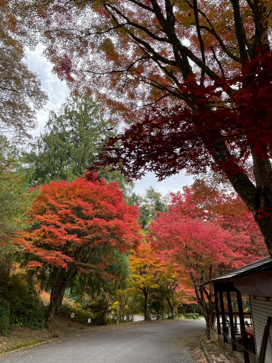 〇高野展望台 見ごろの木と黄緑色の木がございます。本日は雲海も見えました!