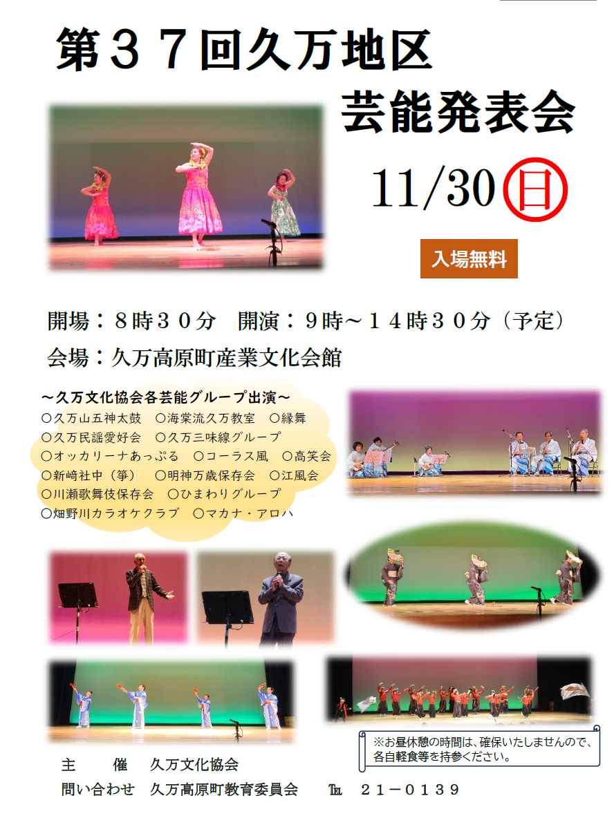 【イベント情報】久万文化協会所属の皆さんによる「久万地区芸能発表会」のお知らせです。